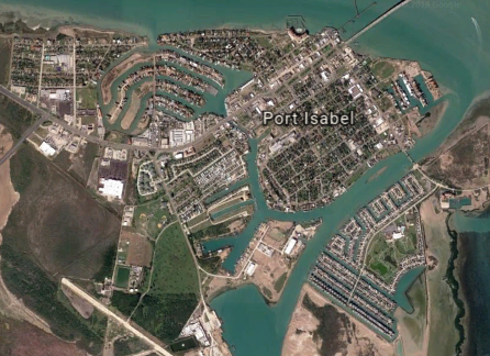 For instance, this is a view from Google Earth showing artificially-made channels and canals throughout the city of Port Isabel.
