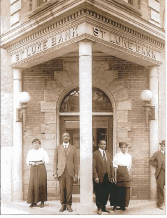 The sign references businesses there, such as the St. Luke Penny Savings Bank, which survived the Great Depression when many banks went under, which became Consolidated Bank and Trust, and is still here today.
