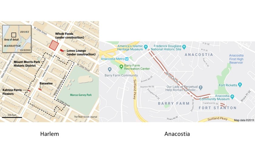 For the sake of keeping this post shorter rather than longer, I am only going to focus on four places – Anacostia in Washington, DC; Harlem in Upper Manhattan in New York City; the Jackson Ward in Richmond, Virginia; and the oldest parts of Atlanta, Georgia.