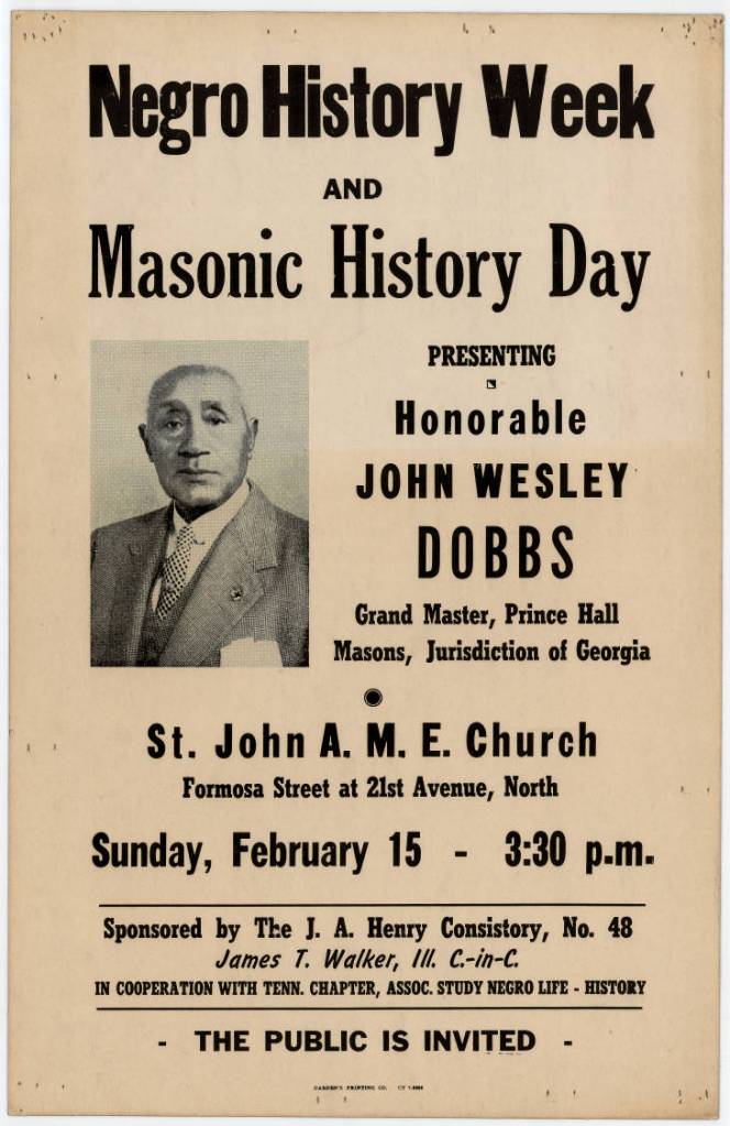 John Wesley Dobbs was a civil and political leader in Atlanta. He became a member of the Prince Hall Masons in 1911, and in 1932, he was elected Grand Master of the Prince Hall Masons of the Jurisdiction of Georgia, a post he held for the rest of his life.