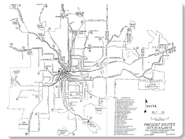 This is a map showing Atlanta’s streetcar system in 1924, and the last streetcar from the original system went out of service in 1949.