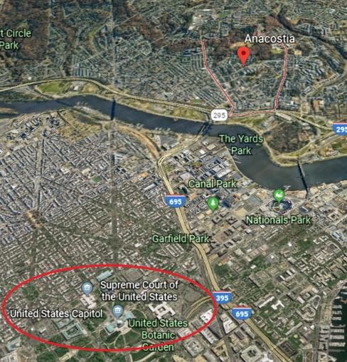 Anacostia is an historic neighborhood in Washington, DC. This is where Anacostia is situated relative to the United States Capitol and Supreme Court Buildings.