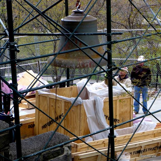This is the 10,000-lb, or 4,536-kilogram, bell of the watchtower before it was crated. It was said to have been used to ring the time twice a day long after the watchtower was no longer being used as part of the city-wide fire warning system.