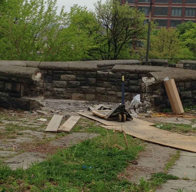 This rocky formation at Harlem Meer is called a bluff, which is one of the code-words used to cover up ancient infrastructure.