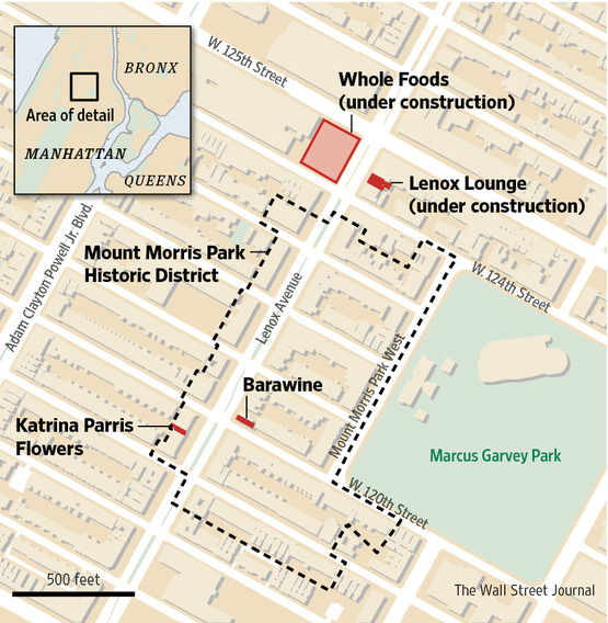 First, let’s see what the neighborhood of Harlem is close to, but not within its boundaries.