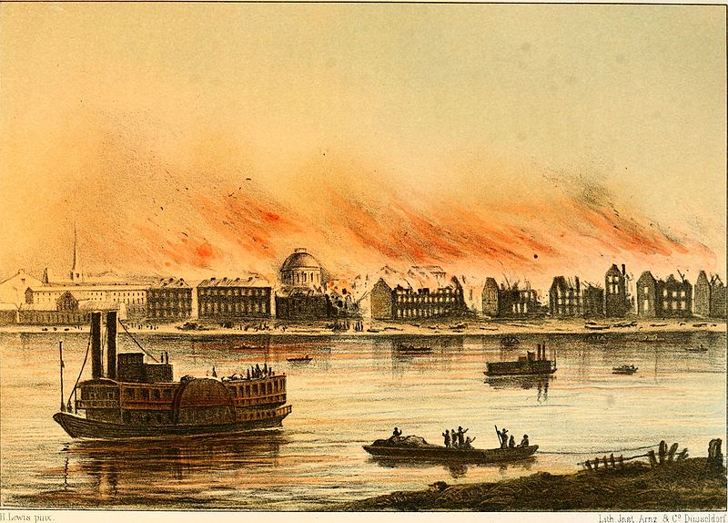 Firemen battling the blaze were said to have been aided by water flowing from the Croton Aqueduct, said to have been completed in 1842 (the same year as the Hamburg fire).