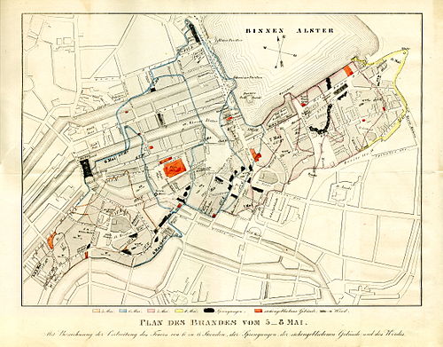 On an interesting side note, the first railway line in Hamburg, between Hamburg and Bergedorf, was opened on May 5th, 1842, on the the exact same day the Great Fire started.