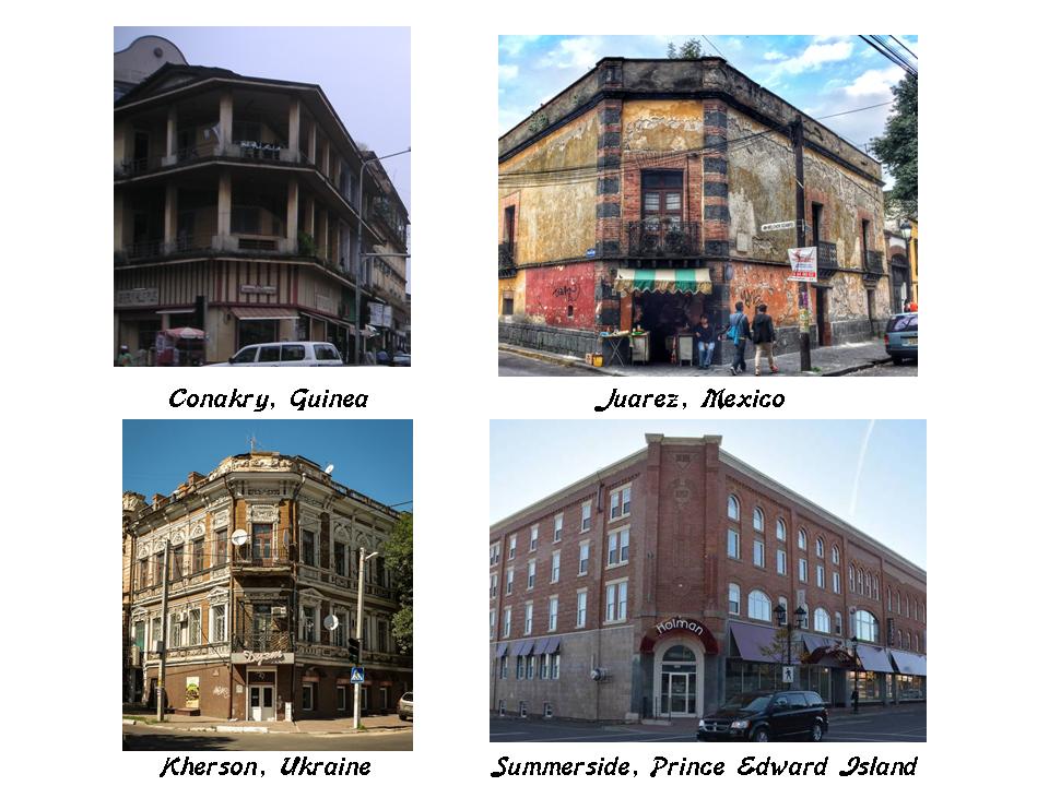 …and I can show you the same street corner lay-out in Conakry, Guinea in Africa on the top left; in Juarez, Mexico on the top right; Kherson, Ukraine on the bottom left; and Summerside on Prince Edward Island in Canada on the bottom right.