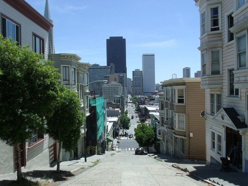 Here is a view down Kearny Street, and its perfectly smooth, and angled, steep slope…