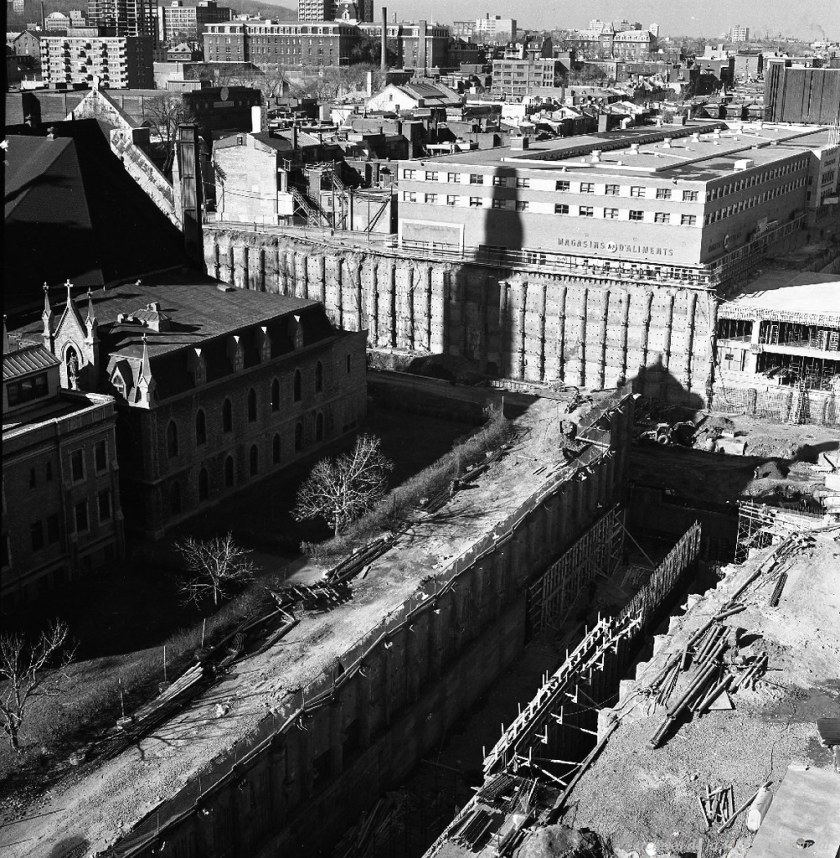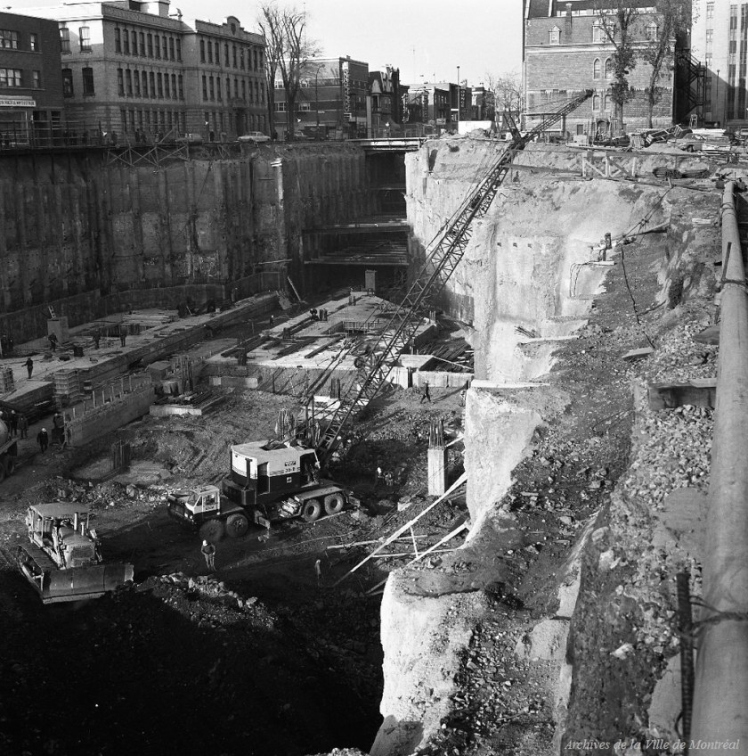 St. Jacques Cathedral was directly connected to the Berri-de Montigny Metro Station. Here are some historical photos of what is described as the construction of this metro station in 1964. Is this new construction going on here…or excavation?