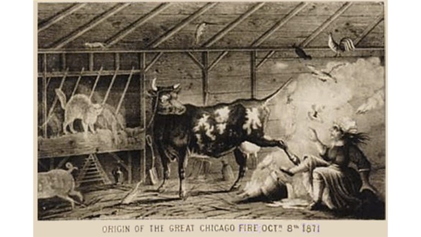 The fire was claimed to have started around 9 pm on October 8th in a small barn belonging to the O’Leary family, and that the shed next to the barn was the first building consumed.