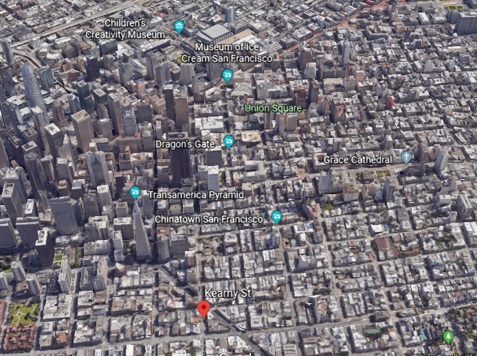 I was able to pinpoint it right away by searching for a map of San Francisco’s Financial District, and then greyed in the affected city blocks for this comparison graphic.