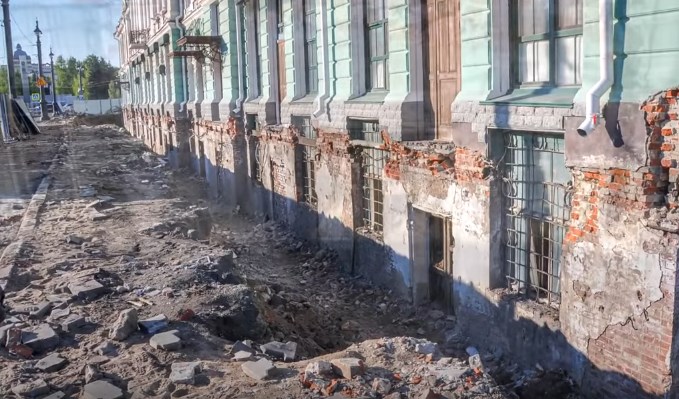 Here’s another one, with shells of stone masonry, and piles of various types of masonry.