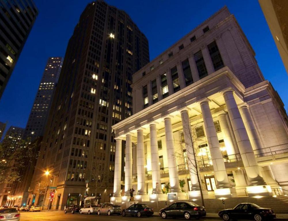 This is the Bently Reserve Building, formerly the Federal Reserve Bank of San Francisco and now a conference center.