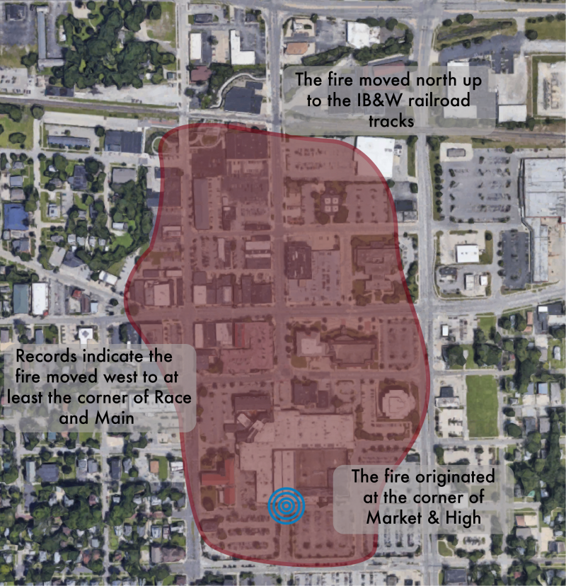 I am not sure exactly where this location is in relationship to where the fire was, but the fire was said to consume much of Main Street.
