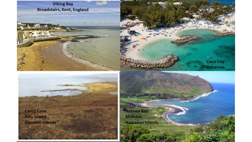 …and on the left, the holding ponds next to the existing canal look very much in how they were made like the jetties at Eureka, California in the top middle; Port Mansfield, Texas, on the top right; and in the bottom middle, Venice, Florida; and the bottom right the South Inlet of the Grand Lucayan Waterway of the Grand Bahama Island.