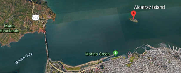 Next, I am going to take a close look at Alcatraz Island, 1.25-miles, or 2.01-kilometers off-shore from San Francisco in San Francisco Bay. It is best known as an infamous federal penintentiary for troublesome prisoners.