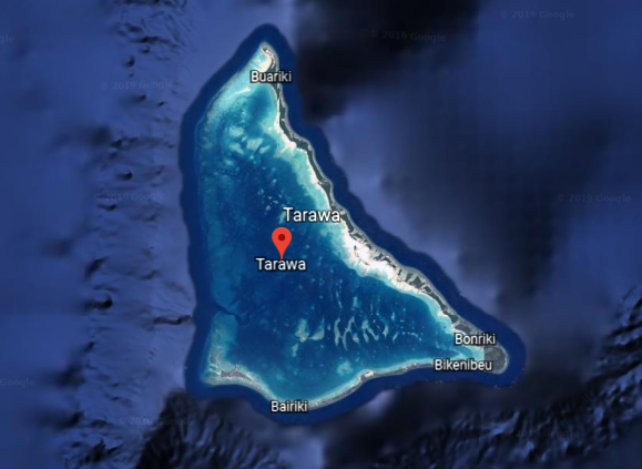 Tarawa was occupied by the Japanese during World War II, and in November of 1943 became the location for the Battle of Tarawa, 76-hours of intense fighting between U. S. Marines and the Japanese forces on the island of Betio, ending with over 6,000 dead on both sides.
