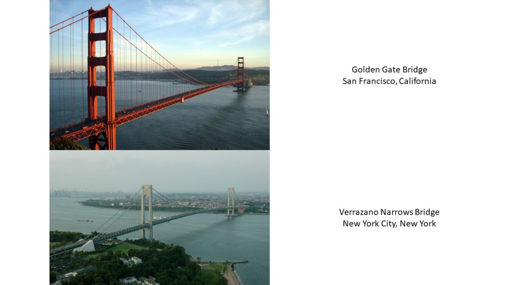 Also, this is a comparison of the Golden Gate Bridge on the top, with the Verrazano Narrows Bridge on the bottom.