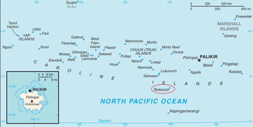 Nukuoro Atoll in the Caroline Islands is a municipality in the State of Pohnpei in the Federated States of Micronesia.