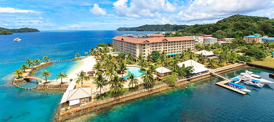 This is the Palau Royal Resort in Koror, sitting on what appears to be an artificial island…