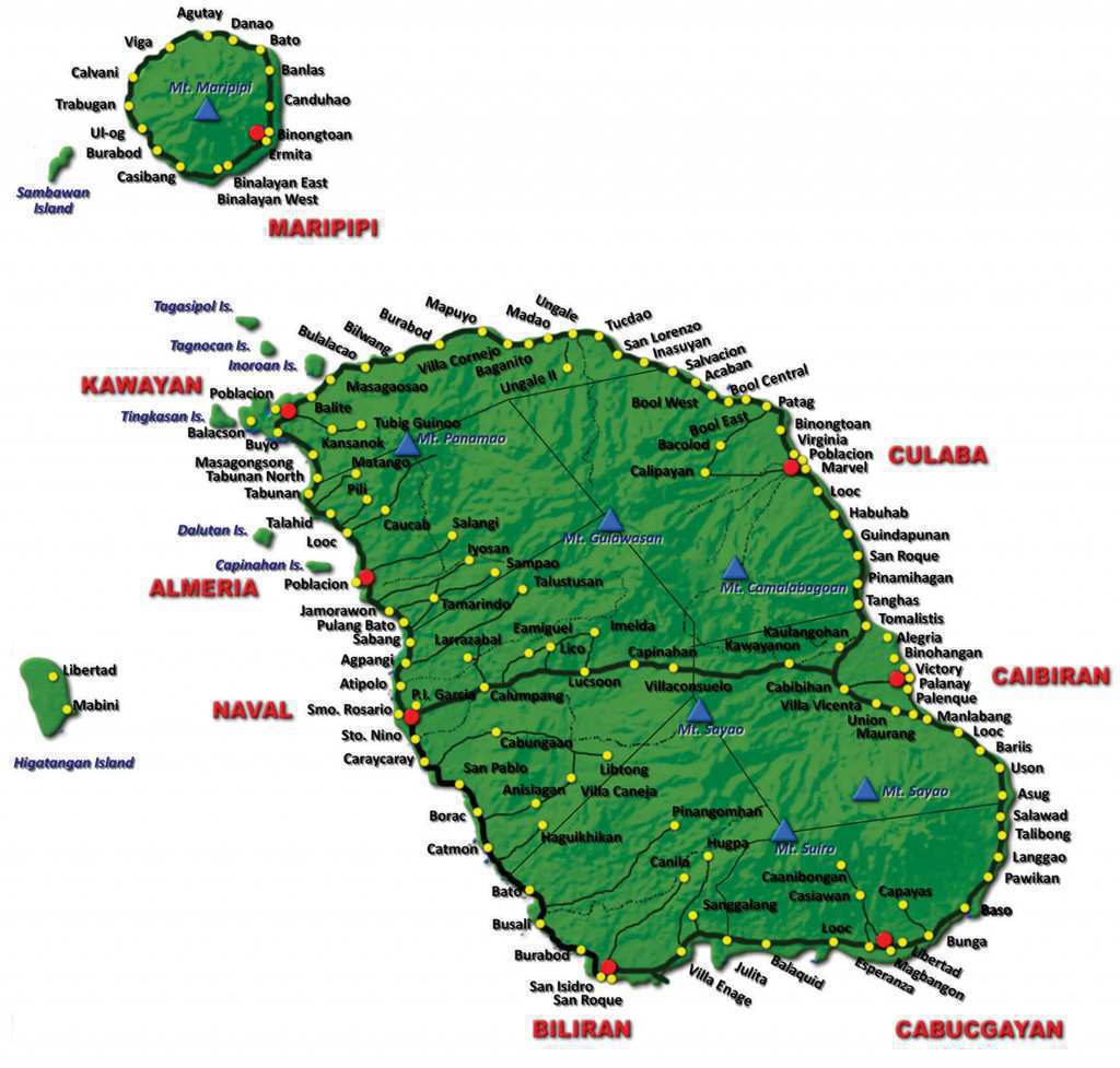 The capital city and population center of Biliran is Naval, on the west coast of the island.