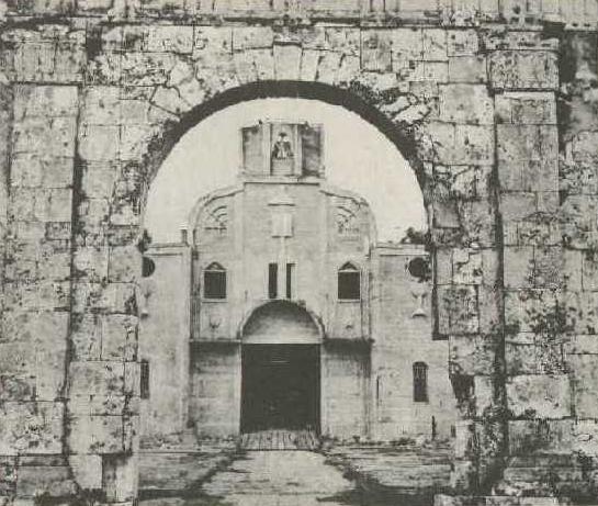 I have seen many, many examples of the same kind of symmetry and proportion between the archway and the perfectly-framed old cathedral in Naval all over the world.