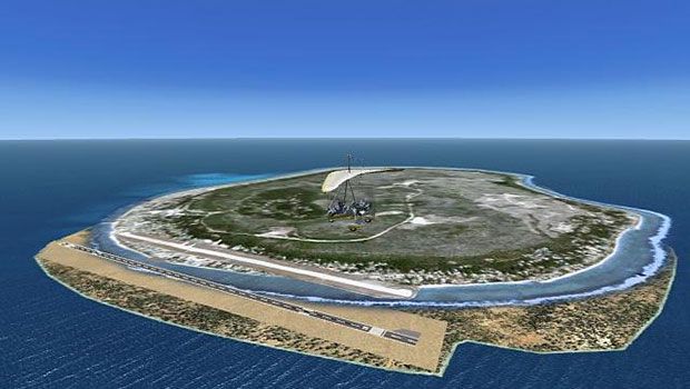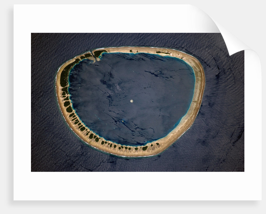 Not sure what that whitish circle in the center of the atoll is, but this is what it looks like on Google Earth. At any rate, an interesting find.