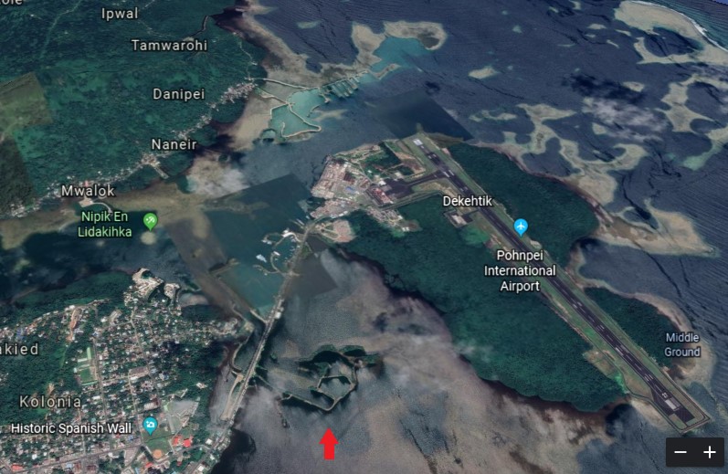 …and what looks like really interesting old infrastructure in the water between this part of Kolonia and the Pohnpei International Airport.