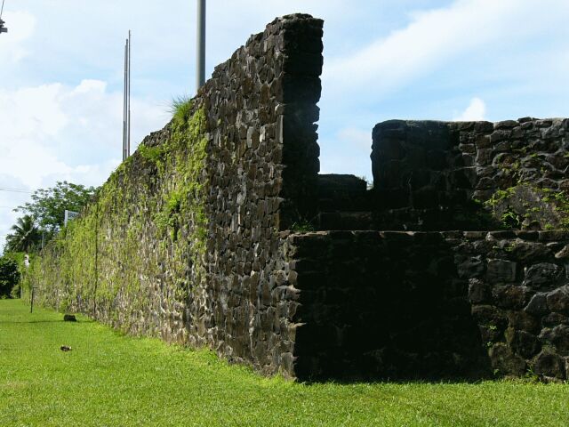I found what is called the Spanish Wall in Kolonia, which we are told was built in 1887 by the Spanish Administrators of Pohnpei, after an uprising by locals drove them onto a ship in the harbor.