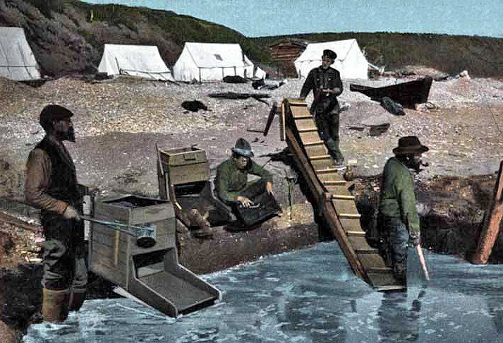 Also in 1899, gold was found in the beach sands for dozens of miles along the coast at Nome, spurring the stampede to new heights.