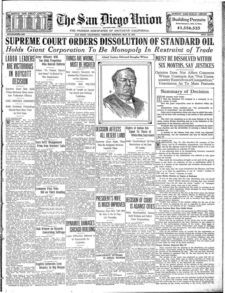..and, during the same time-period, in 1911, the United States Supreme Court ruled that Standard Oil was an illegal monopoly, ending its history as one of the world’s first and largest multinational corporations.