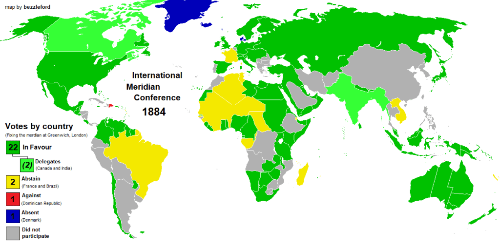 Twenty-two of the twenty-five countries in attendance voted to adopt the longitude of the Royal Observatory in Greenwich as the zero-reference line.