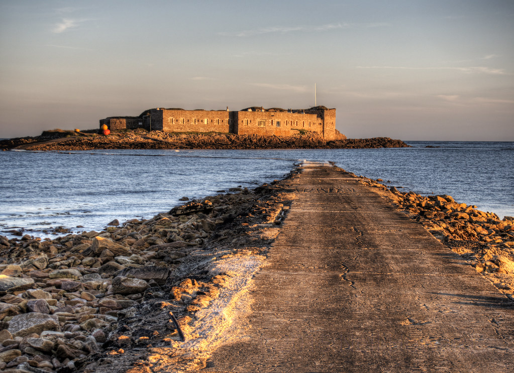 …and is also at the end of a causeway that floods at high tide, like Fort Ile de Raz and Fort Houmet Herbe.