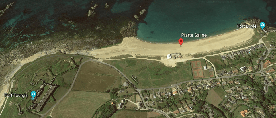 Fort Platte Saline is shown on the Alderney star fort map between Fort Tourgis and Fort Doyle, but it doesn’t appear to be there physically any more, with its memory retained in the name of this beach.