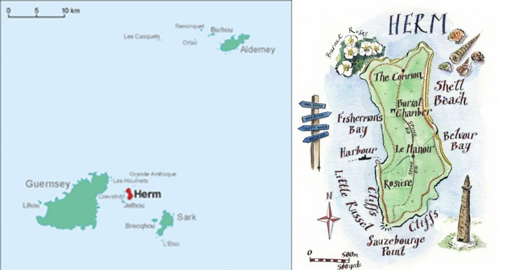 Moving along to the next Channel island, the island of Herm is just east of Guernsey, and part of the Parish of St. Peter Port in the Bailiwick of Guernsey.