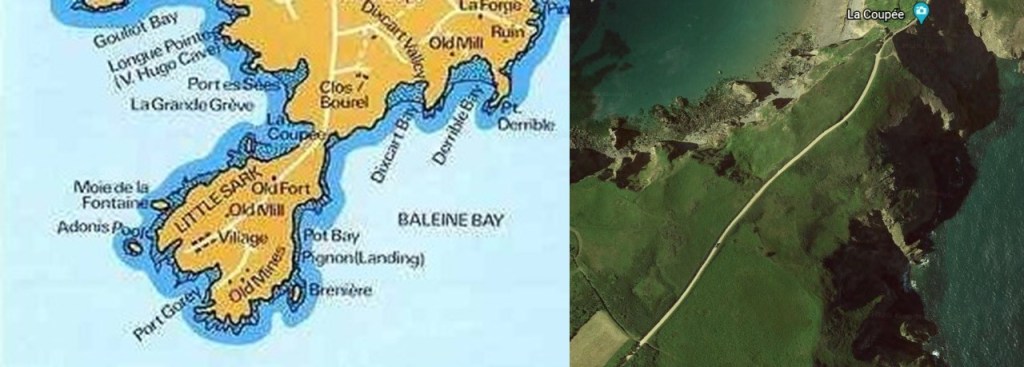 I noticed on the map a place marked “Old Fort,” and when I searched for information about it, I found a reference to it describing it as a star-shaped earthwork fort above the narrow isthmus that joins Little Sark to Greater Sark.