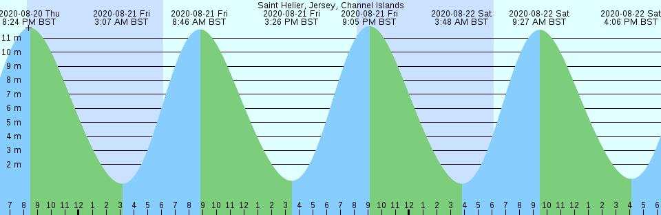Jersey also has one of the highest ranges between low-tide and high-tide in the world, a massive bulge of water that moves backwards and forwards, twice each day.