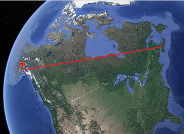 The island of Big Diomede belongs to Russia, and Little Diomede to the United States.