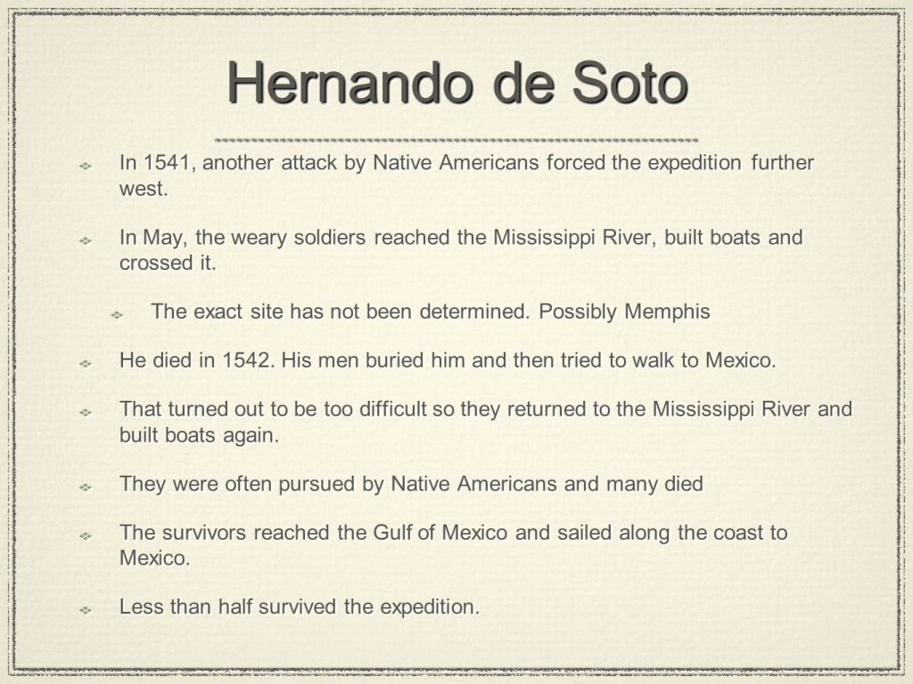 In 1541, the Spanish Conquistador Hernando de Soto reached the Mississippi River…