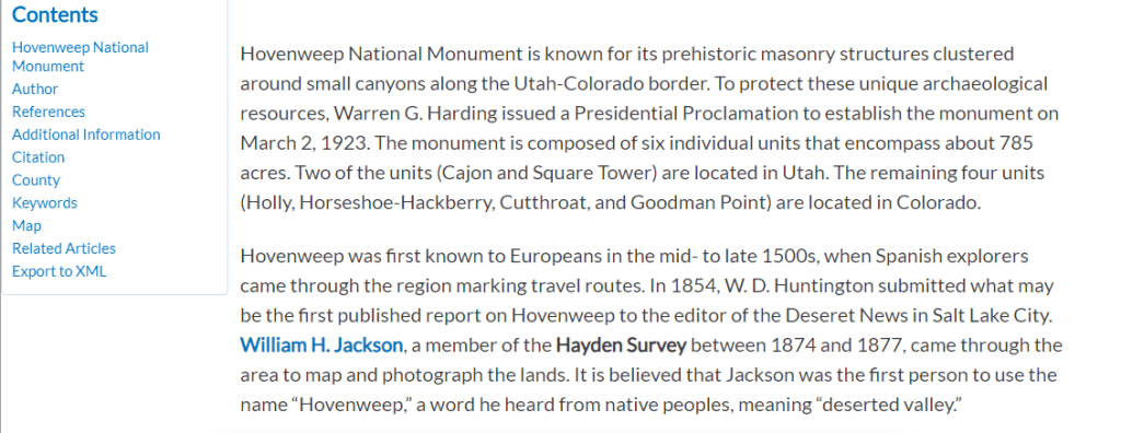 The viewer found out that in 1854, W. D. Huntington submitted what may be the first published report on Hovenweep to the editor of the Deseret News in Salt Lake City, though he has not yet found the report.