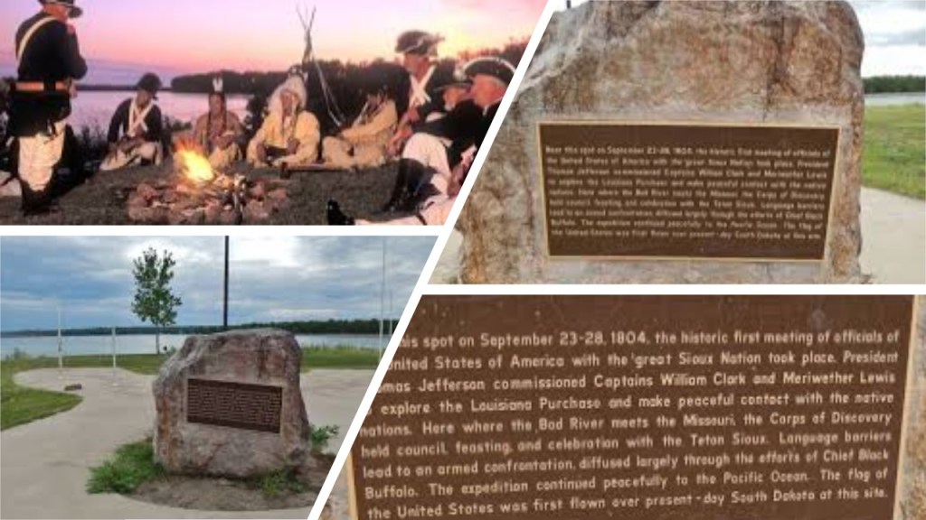 The expedition held talks with the Sioux Nation near the confluence of the Missouri and Bad Rivers in what is now Fort Pierre, South Dakota.