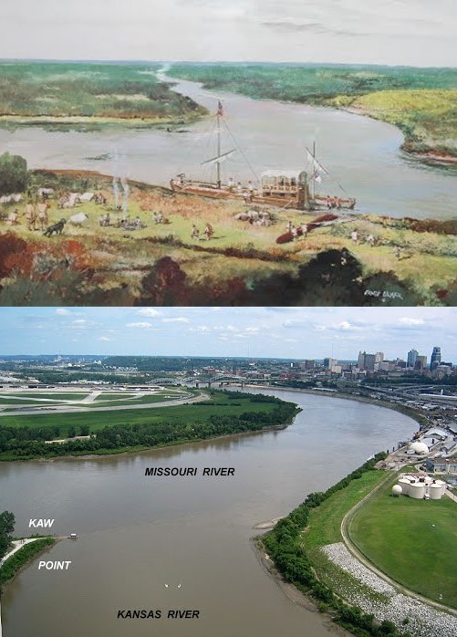 From St. Charles, the expedition followed the Missouri through what is now Kansas City, Missouri, where they camped at Kaw Point on June 26th of 1804, where the Kansas River runs into the Missouri River…The way these two rivers merge together into one at Kaw Point is another example of the many reasons I believe that so-called natural rivers are in actuality canal systems.