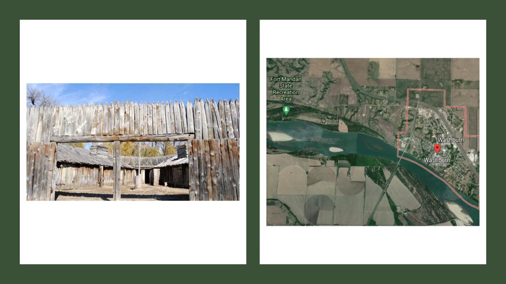 The next place we find the Corps of Discovery landing was near present-day Washburn, North Dakota, where they built Fort Mandan to live in during the winter of 1804 – 1805.