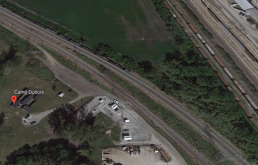 …I am seeing that it is situated beside a location where two railroad lines merge into one, as well as a landscape filled with huge lots and huge tanks…