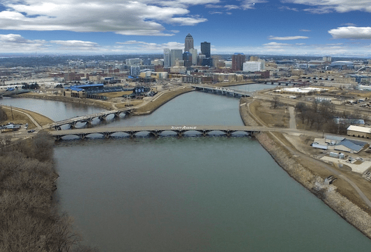 The last place I am going to take a look at on this linear alignment is Des Moines, the state capital and largest city of Iowa.