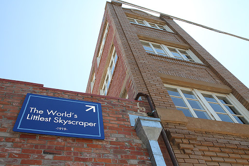 …said to have been completed in 1919 as the result of a fraudulent investment scheme by a con man, became a source of embarrassment to the city, and was featured in “Ripley’s Believe it or Not” in the 1920s as the “World’s Littlest Skyscraper,” and the name stuck.