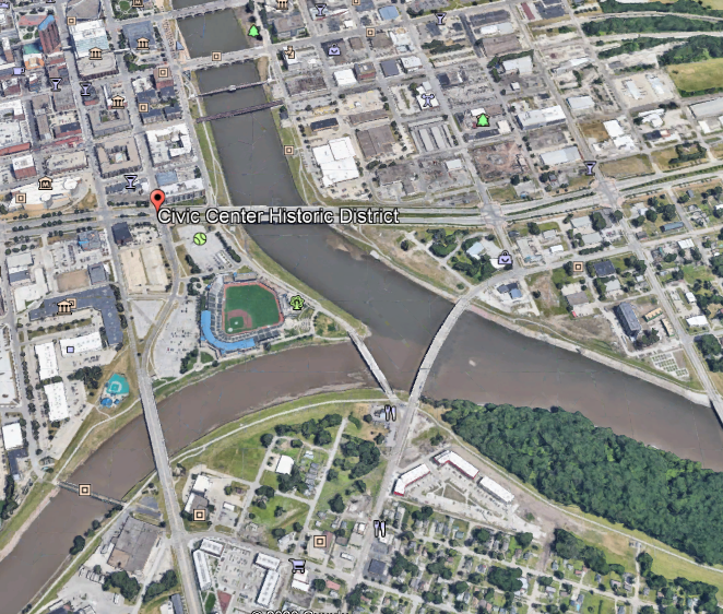 These three buildings are part of the Civic Center Historic District that is located at the confluence of the Des Moines and Raccoon Rivers.