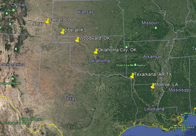 I am going to go ahead and end this post here, and in the next part of the series, I will be looking at a linear alignment of cities between Monroe, Louisiana, and Lamar, Colorado.