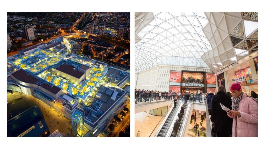 The former White City Exhibition Site now hosts the Westfield Shopping Center, one of the largest in London.